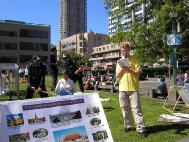 有些华人路过公园,出于对大陆政府的恐惧,有的不愿意签名支持法轮功,但是他们还是很愿意看介绍,并与学员交谈。也许他们明白的一面知道这样了解真象的机会对他们来说很关键吧。