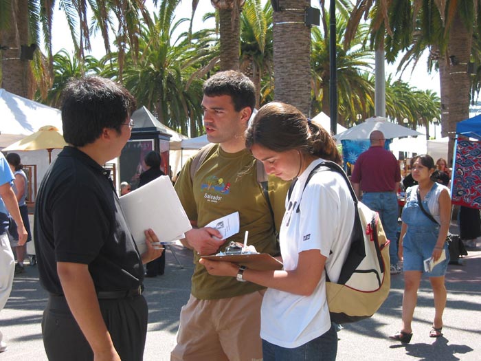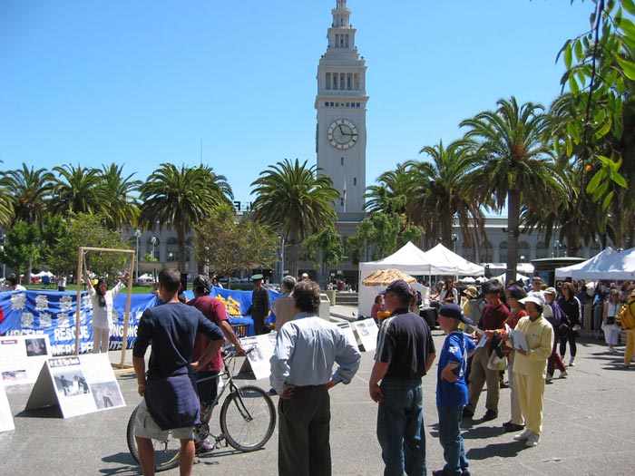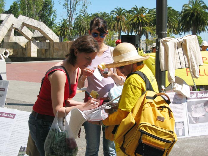 当天,许多观看酷刑展的人都仔细的从头到尾的看,有的看了两个小时。看了酷刑演示后,有的说:“请告诉我,我可以做什么?”还有的说:“我会告诉我的家人、朋友、同事,让大家知道法轮功在中国受迫害的情形。”很多人签名支持反酷刑迫害。
