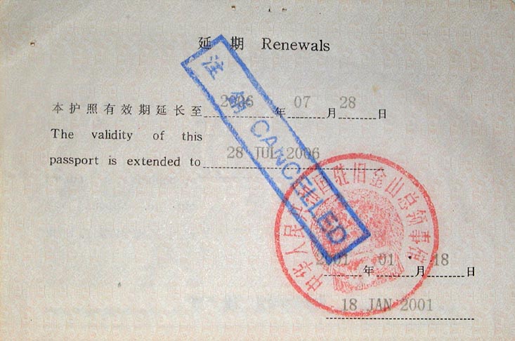 被强制离开中国后,我因为护照于2001年7月29日到期(我的护照是1996年来美国留学时办的),所以我于2001年1月16日左右,去旧金山中国领事馆去申请护照延期。当我填好表,交上相关的申请材料后,领事馆的签证工作人员要我18日来取护照。