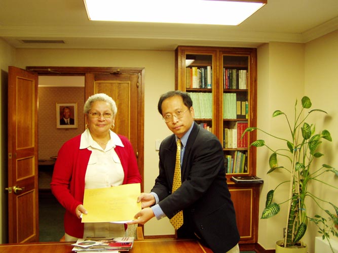 同日,南非驻加拿大大使馆大使特里沙-索罗门(Teresa M. Solomon)女士会见了法轮功学员代表,并全面了解了袭击案件和江氏集团系统迫害法轮功的事实真象。法轮功学员向索罗门女士递交了给南非政府的信件,信中表示这次枪击事件是一次恐怖主义的恶性事件,它不仅仅针对海外的法轮功学员,实际上对世界上每一个人都造成了威胁。索罗门女士表示会向南非政府反映此事件,并承诺将信件转交给南非政府。