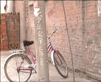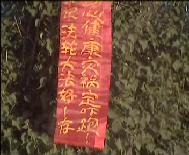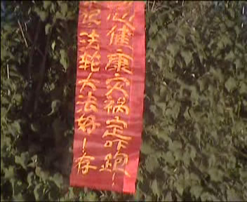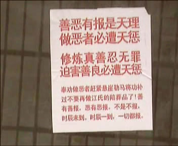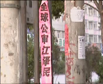 图片:北方某市春节期间挂出的法轮功真象标语和条幅