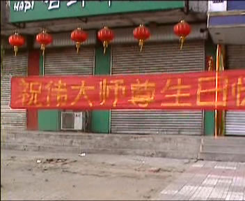 【明慧网2004年6月5日】为救度更多的善良世人,东北某市的法轮大法弟子以多种多样的形式机智灵活的向当地世人讲真象,揭露当地的邪恶。2004年农历四月初八,大法弟子又一次在城市的大街小巷挂巨幅横幅并撒真象资料,有力的震慑了邪恶。
