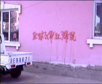 东北某市法轮大法弟子挂横幅贴真象救度世人(图)