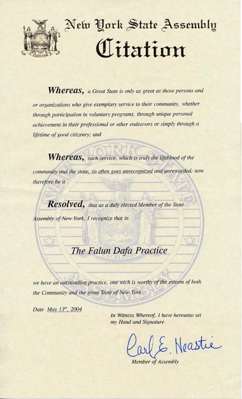 作为纽约州的一名通过正式选举产生的州众议员,我褒奖