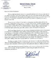 美国参议会已经批准了一系列国际条约,诸如《公民与政治权利国际公约》(1976),《反酷刑公约》以及《禁止酷刑及其它残忍、不人道或有辱人格待遇或处罚公约》(1987)。参议院对这些及其它公约的确认突出显示了人权方面的進步。我们国家和世界其它国家的领导人站在你们一边,对你们许多同修所遭受的人权侵犯予以谴责。法轮大法修炼群体正在使越来越多的人意识到人权问题,我赞赏你们这样做。