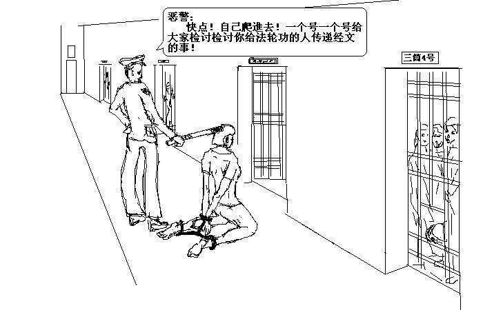 更令人发指的是,他们还以暴力胁迫受刑者跪行游监,即从一个监室跪行至另一个监室,以污辱人格的方式对整个筒道内的犯人做反面宣传。据明慧消息报道曾有一个判刑一年的犯人(尚未修炼)在了解了法轮大法的真象后,深知大法弟子是被迫害的,她帮大法弟子传阅背会的经文,被邪恶的管教发现后,对她施以此刑,并让她带着械具从一号监室跪到四号监室,又从四号监室跪到一号监室,打开每个监室门進行人格污辱。有犯人因同情她而落泪,却被恶警大打出手。可从一侧面了解到这场迫害的深度和广度。