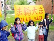 一位老太太说:“这音乐太美了。我想要学这个功法。”一位给中国移民教授英语和法语的教师曾经从他的学生那儿听到过很多中国政府诽谤法轮功的谎言宣传。在场的一位学员循循善诱的向他解释中国江氏集团对法轮功的迫害是如何开始的,这场仇恨宣传又是如何毒害了千百万中国人的思想。这位教师最后终于明白了,他高高兴兴的拿了一些资料和光碟,并说他要把真象告诉给他的学生。很多中国人都接受了资料。有些人虽然没有接受我们的资料,但他们看到西方学员展示动作舒缓的功法及写着“真善忍”的横幅时,流露出惊讶的表情。一位年轻的中国姑娘开始时还有些犹豫不决,不知道是否该拿我们的资料,但是看到递给她资料的学员向她微笑时,她伸手接过资料,然后一动不动的认真读了好久。