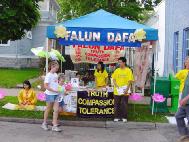 通过这个盛会,很多大小商家、媒体,和政府官员,有机会看到了大法的美好。特别是以商家、政府组织、非政府组织为主的各种游行队伍经过法轮大法的展位时很多司机和表演者都欣然接受了弟子们送上的资料和手工制作的荷花。游行结束后,川流不息的人群在街上走过,很多人驻足观看,主动索要资料,甚至很有兴趣的和弟子们交谈。也有一些人当场学炼功法,和签名呼吁释放李祥春并停止迫害。