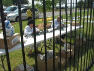 附近一家中餐馆的老板把她的大门口让出来,让学员们炼功、举横幅、作酷刑展示等,给学员们提供各种方便。她是一位70多岁的老太太,听学员介绍法轮功与法轮功受迫害的情况后,拉着学员的手说:“你们都是好人。我知道,你们都是好人,我支持你们。”