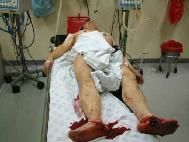 被枪击的法轮功学员David Liang在南非医院接受治疗这张在南非Chris Hani-Baragwanath医院拍摄的血淋淋的照片令人心中震痛。