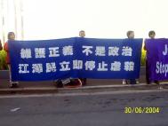 惊闻6月28日发生在南非的曾庆红雇凶杀人、枪击澳洲法轮功学员事件,华府法轮功学员于2004年6月29日在中国驻美大使馆前举行新闻发布会,强烈谴责江氏集团的恐怖主义行径。