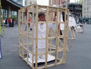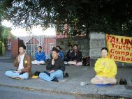 ![]() 法轮功学员同守卫的警察合影 | ![]() 展示江氏集团在海外攻击骚扰法轮功学员的证据 |