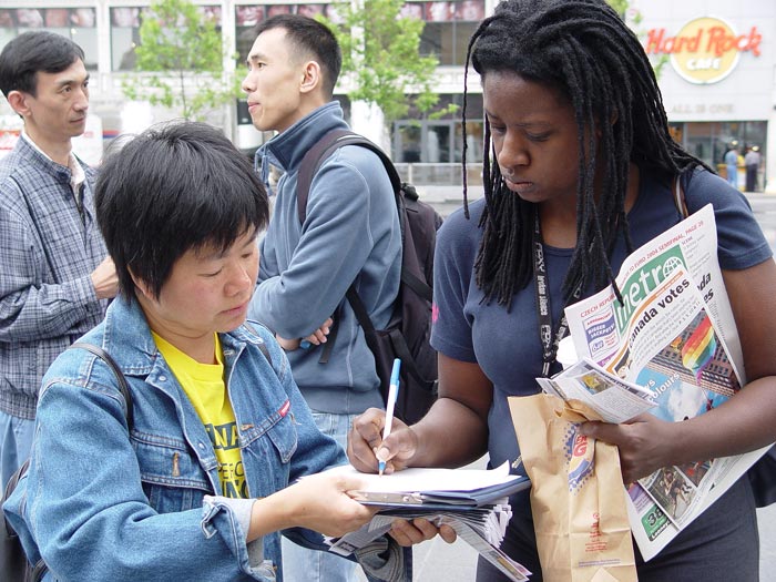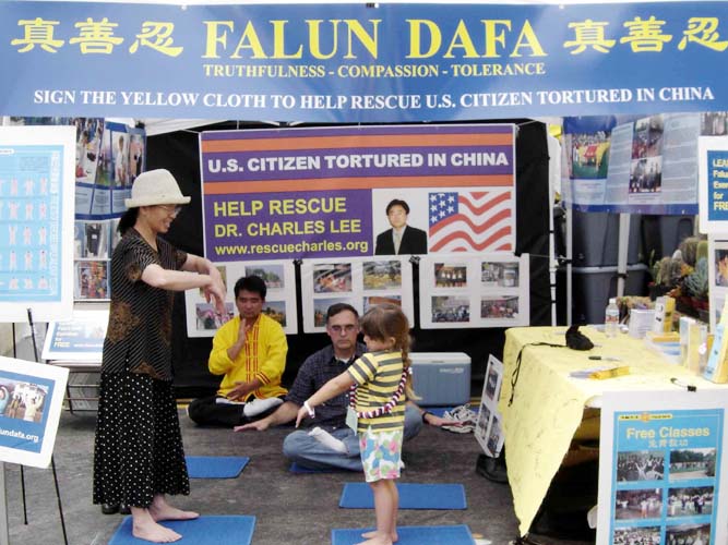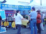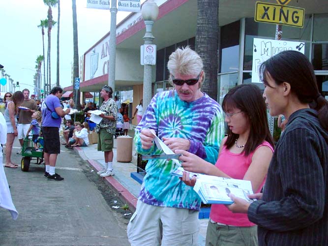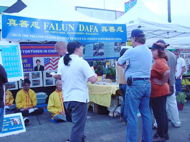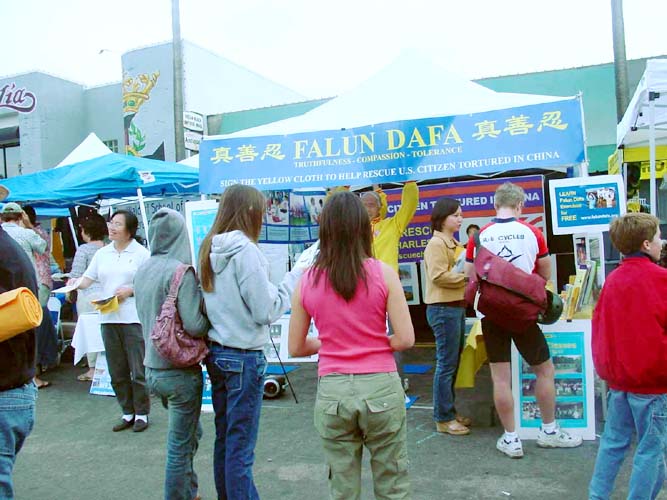 ![]() 美国天主教大学教授聂森博士在发言 | ![]() 西人法轮功学员杰拉德在发言 | ![]() 西人法轮功学员向路人讲真象 |