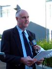![]() 新闻发布会上法轮功发言人John Deller 介绍枪击案详情 | ![]() 同David Liang一同前往南非的李先生的妻子李迎在新闻发布会上接受采访 |