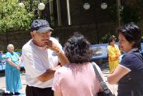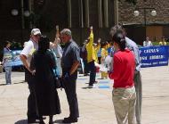 新闻发布会于中午十二点半开始举行。法轮功学员首先宣读了一份新闻稿。在新闻稿中,学员扼要介绍了法轮大法在世界各地的洪传概况及法轮大法对社区的贡献,同时详细介绍了6月28日晚在南非发生的江氏集团公然使用黑社会谋杀手段对付和平理性的法轮功学员的国家恐怖主义行为。最后,圣地亚哥法轮功学员强烈谴责江氏集团把国家恐怖主义扩展到海外,并呼吁世界各国政府,民间组织及一切善良的人们共同起来阻止暴行。