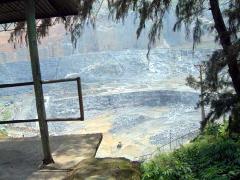 ![]() 这是走近了看,可以清楚看见地上汽车的印痕和矿石渣; | ![]() 这就是大坑前的那个门。 |