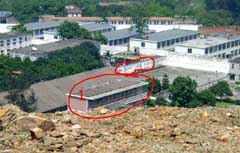 ![]() 这是坐了大约10多分钟的三轮车后; | ![]() 走近看,可以清楚的看到上面标志着“劳教所” |