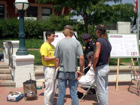 值得一提的是,为了支持此次酷刑展,伊利诺伊州和俄亥俄州的学员长途驱车赶来参加,在烈日下布置展板和道具,演示酷刑,发放真象资料,不辞辛劳。此次酷刑展的成功是很多弟子一起努力的结果,包括各城市学员间的协调工作、联系车辆和展板道具、作酷刑演示、联络媒体、联系展出场地等,真正体现了大法弟子整体的力量。正如法中所说,“大法弟子作为一个整体在证实法中协调一致法力会很大。”(《2003年元宵节在美国西部法会上解法》)