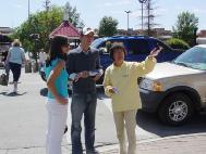 法轮功学员集体发正念清除另外空间邪恶的干扰,之后天气有所好转,风力减弱,观看和接资料的人也增多了。期间几位学员拜访了当地的议员办公室,向他们介绍法轮功真象。