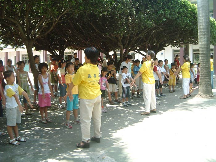 【明慧网2004年7月12日】台湾云林县土库国小在2004年7月11日举办了“法轮大法明慧儿童夏令营”,吸引了近百名家长及国小学童报名参加。此次营队活动在7月11日、7月25日、8月8日、8月22日共四次半天早上举行,整个活动内容包含:炼法轮功五套功法、学习生活美语、唱歌、诗词朗诵、擦画等等,内容丰富多元且全然免费。
