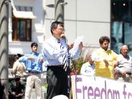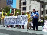 ![]() “保卫言论自由人权同盟”的代表马有志先生 | ![]() 西藏之友的代表Giovanni | ![]() 伯克莱大学「中国论坛」的代表发言 |