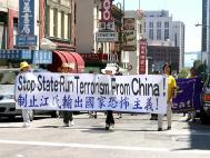 代表“金山自由论坛”的评论家左戈云说,国家恐怖主义是对基本人权及生存权利的最严重的侵害,也是天理不容的野蛮行为。迫害法轮功的元凶江××的追随者曾庆红,在南非访问时,法轮功学员前往抗议和起诉,一部澳洲法轮功学员的座车遭到了蓄意的枪击,造成了最严重的一次伤害枪伤。