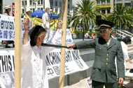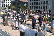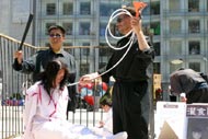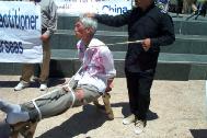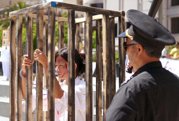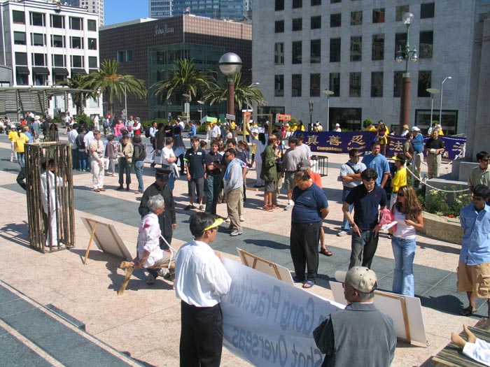 开车两个多小时来到旧金山演示被关在铁笼子里的刘姓学员说,“站在这儿,我就想到国内的法轮功学员承受了很多。”她希望观众能通过酷刑展,唤起他们心中的善念,能站出来制止江氏集团对法轮功学员的非人道的迫害。她说,其实这也是为了每一个人,为了大家。