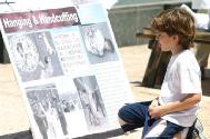 ![]() 酷刑现场 | ![]() 看到比自己还小的婴儿被吊死,小观众也皱起了眉头 | ![]() 观众 |