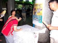![]() 一个签名就是一份正义的力量 | ![]() 民众主动签名表达支持维护人权 | ![]() 把真象福音传送给進出车站的旅客 |