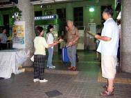 進出车站的人群中,有很多民众在知道江氏集团暴行延伸到海外后,都表示非常气愤,主动签字表达支持维护基本人权;有的旅客甚至在时间很紧的情况下,也签下名字发出正义的声音以唾弃江氏集团恶劣的行径;还有的旅客送给法轮功学员饮料,为他们加油打气;一旁的计程车司机也表示,江氏集团就是不讲人权的政权;可见江氏集团的虚假面具已不管用,成为人人喊打的过街老鼠。