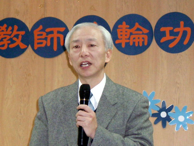 台大化学研究所毕业的张福章先生从现代科学角度谈心灵力量,他先提一些问题引发在座学员的省思,请问大家心中最想要的是什么?健康、财富、平安、智慧?若是小孩,他的期盼可能是成为哈利波特,因为手中的魔杖可以保护自己,惩治坏人。而在座各位老师的希望,是否就是学生乖巧、得天下英才而教育之,虽不敢奢望人人上台大,但至少个个道德良好,明理懂事。而在殷殷期勉他们上進之时,我们自己切莫忽视了言行身教对学生的影响,我们的观念心态,往往对学生造成深远的影响,因为人的心灵意念是带有强大力量的。并以日本江本胜先生所研究水的结晶幻灯片解说善念的可贵,希望教育工作者多以善念来感化影响学生。并提及中国当局镇压法轮功已近五年,当初只因炼功人数众多,竟招致江氏的嫉妒、镇压,并强指法轮功是“不法集团”,有“政治意图”。事实上,《转法轮》的书中,只教人修心性、做好人。当人们认识到宇宙的真理,知道什么是对的时候,自然不再需要教他什么是错的了。一个真心热爱真理、坚定求道的人,岂能因为外在的镇压诬蔑而动摇放弃?生在台湾的中国人是幸福的,我们拥有自由的修炼环境,可以在这儿专心的修心炼功,在体悟心灵的威力无与伦比之际,又怎能不以正念正行来圆容自己与世人。