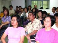 演讲结束后,许多人深感受益良多,也认识到修炼法轮功能改善自己的身心状况,对法轮功产生很大的兴趣,纷纷到报名处索取法轮功的相关资料,向在场的法轮功学员询问相关问题,也有人当场就报名参加接下来的“九天班”研习活动。