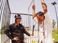 ![]() 过往行人驻足观看真像展板 | ![]() 法轮功学员亲身再现酷刑 |