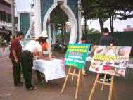 为了让更多人认清了解这件枪击事件,能共同来制止并谴责江氏集团恐怖主义蔓延海外,2004年7月15日下午,台北县三峡镇法轮功学员选择了在莺歌陶瓷老街举办“制止并谴责江氏集团恐怖主义蔓延海外”征签活动。