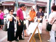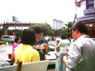 结束了莺歌陶瓷老街的征签活动之后,法轮功学员又到三峡市中心街道旁的店家,挨家挨户的主动拜访老板讲清真象,沿路有服饰店、美容院、卖面店家、电脑卖场、便利商店……。等,因为这些店家老板都熟识三峡法轮功学员,也都相信法轮功学员处世为人皆良善正直,明白真象后,纷纷签名支持伸张正义、保障人们信仰的自由和权利。