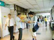 刚开始征签的时候,并不很顺利。因为火车站长让学员征签的地点人群较少。后来经与站长协调,站长了解及支持为了让更多的人能共同关心人权,让法轮功学员在人潮出入多的地方征签,并且准予挂上“法轮大法好”的横幅。征签结果效果也如预期的好。進出车站的人群中,也有很多民众在知道江氏集团暴行延伸到海外后,都表示非常气愤,主动签名表达支持维护基本人权;有的旅客甚至说:“签个名只要30秒,用30秒就可以救人,发出正义的声音以唾弃江氏集团恶劣的行径”。