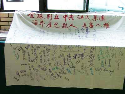 ![]() 桃园市民热烈响应“反迫害”签名活动,支持法轮功 | ![]() 桃园市民关心法轮功学员受迫害情况 | ![]() 征签布条上满满的签名 |