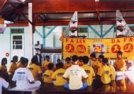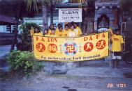 读过几遍《转法轮》后,2004年4月27日,孩子们第一次一块儿学印度尼西亚文盲文版的《转法轮》。有16个孩子炼功,包括7名小学生,3名初中生,5名高中生,以及一名2003年毕业生。16个炼功的人中,8人是男生,8人是女生。
