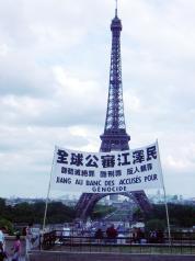 。图为法轮功成员在法国抗议中国镇压。