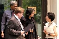 2004年6月29日下午1点,多伦多地区的法轮功学员来到中领馆前召开新闻发布会,强烈谴责江泽民集团成员之一--曾庆红、薄熙来一行在南非雇凶杀人,以恐怖主义手段对付和平请愿的法轮功学员的行径。