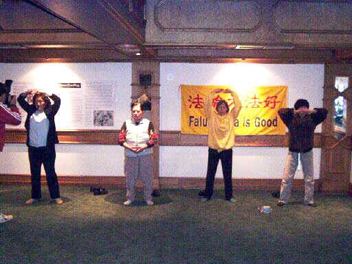 2004年6月29日中午,加拿大卡尔加里法轮功学员到中国驻卡尔加里领事馆,進行和平抗议,强烈谴责江氏集团在海外雇用凶手,枪击法轮功学员的恐怖主义行为。