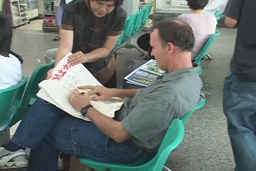 到各乡镇公所征签的学员,特别受到乡长、议员、代表的支持,都同声谴责江氏集团的暴行。三地门乡长直接了当表示他想炼法轮功很久了,隔天我们马上就安排学员上山义务教功,乡公所内的员工也纷纷签名声援。另外潮州镇、里港乡、高树乡、九如乡、万峦乡等乡长不仅签名,还在征签布条上写了请中共尊重人权的呼吁。几天下来,已有二十个乡镇长及多位议员代表签名支持。