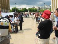 人们对江集团的暴行感到震惊和愤怒,纷纷签名反对迫害法轮功。许多来旅游的、现居住在不同国家的柬埔寨侨民都表达了同样的观点:他们相信江氏集团是干得出来这种暴行的;一些纯朴的温州华侨对学员逼真的展示信以为真,气愤的问,为什么中国警察敢跑到法国来殴打法轮功学员,他们怎么可以这样做?!一位来自中国大陆的人士说,如果哪一天,人们能在公开场合说“法轮大法好”而不受歧视和迫害,那说明中国离民主就不远了;到那一天我会说的:法轮大法好!