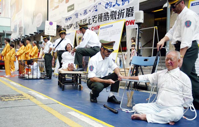 图片报道:香港学员举行游行及模拟酷刑展 呼吁结束江氏集团五年恐怖迫害