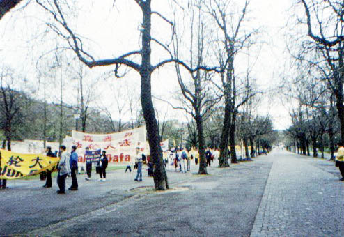 ![]() 德国洪法炼功 | ![]() 瑞士游行 | ![]() 联合国广场前和平请愿 |