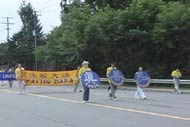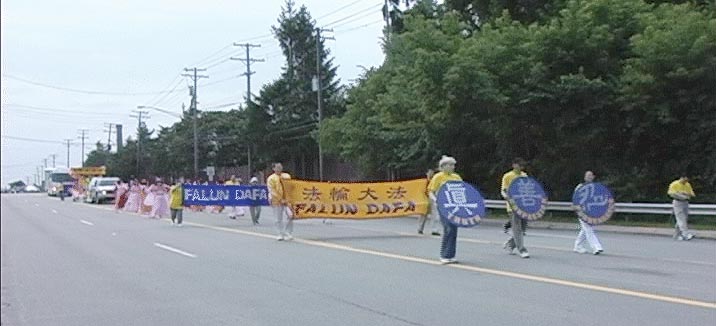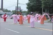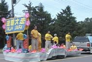 【明慧网2004年7月21日】北美密西根州(Michigan)法轮功学员于2004年7月16日,17日参加了芳明顿坡市(Farmington Hills City)芳德节(Founder's Festival)的活动,以祥和的炼功动作,精美花车,传统彩带舞,获得游行比赛社区表演奖冠军(First place Community Based Performance)