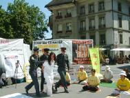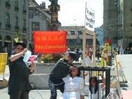 【明慧网2004年7月21日】1999年7月20日,在江泽民的阴谋策划下,在中国大陆开始了对法轮功学员的残酷镇压,至今已达五年。在今年7.20到来的前夕,7月17日来自瑞士各地的数十名法轮功学员,在首都伯尔尼市中心举行“酷刑展”,向世人讲真象,要求立即停止已持续五年之久的对法轮功的残酷镇压。