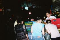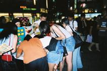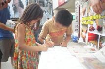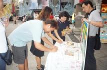 有三个急着去倒垃圾的女店员,叫我们一定要等她们,倒完垃圾一定要回来签名。有一位先生来来回回走了几回,最后终于走向我们,签完名后还跟我们说,你们要继续加油。一位骑机车经过的骑士,停下车来听完我们的说明后,一面说“太过份了”,一面在布条上签名。