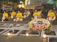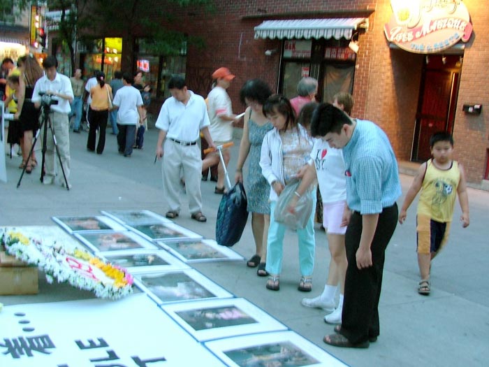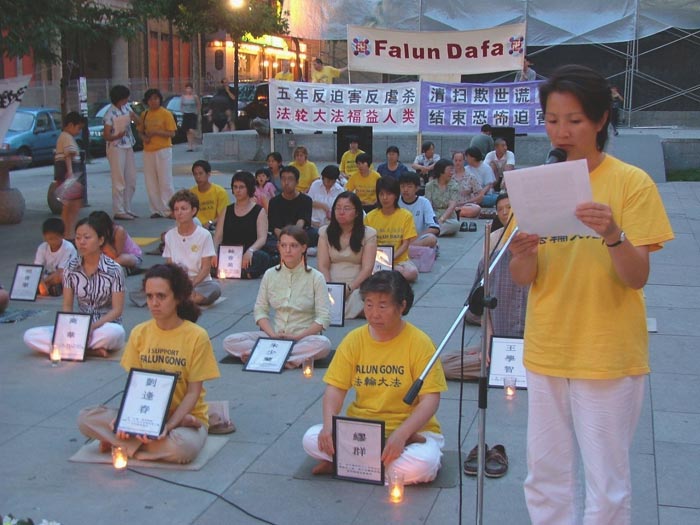 【明慧网2004年7月22日】(明慧记者肖妍、郑子炎蒙特利尔报道)2004年7月20日是中国江氏流氓政治集团迫害法轮功五周年的日子,蒙特利尔法轮功学员晚上7时至10时在唐人街中山公园举行集会,揭露江氏对法轮功的非法迫害,并烛光悼念因为坚持真善忍信仰而被迫害致死的法轮功学员。