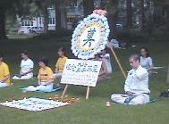 【明慧网2004年7月22日】2004年7月20日晚七点至晚十点,加拿大安省滑铁卢地区的法轮功学员聚集在凯基纳市维多利亚公园,举行了图片展和烛光悼念活动,以纪念在江氏集团五年来的迫害中献出可贵生命的大法弟子们。